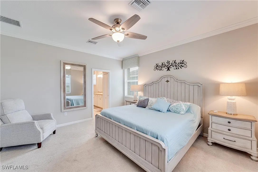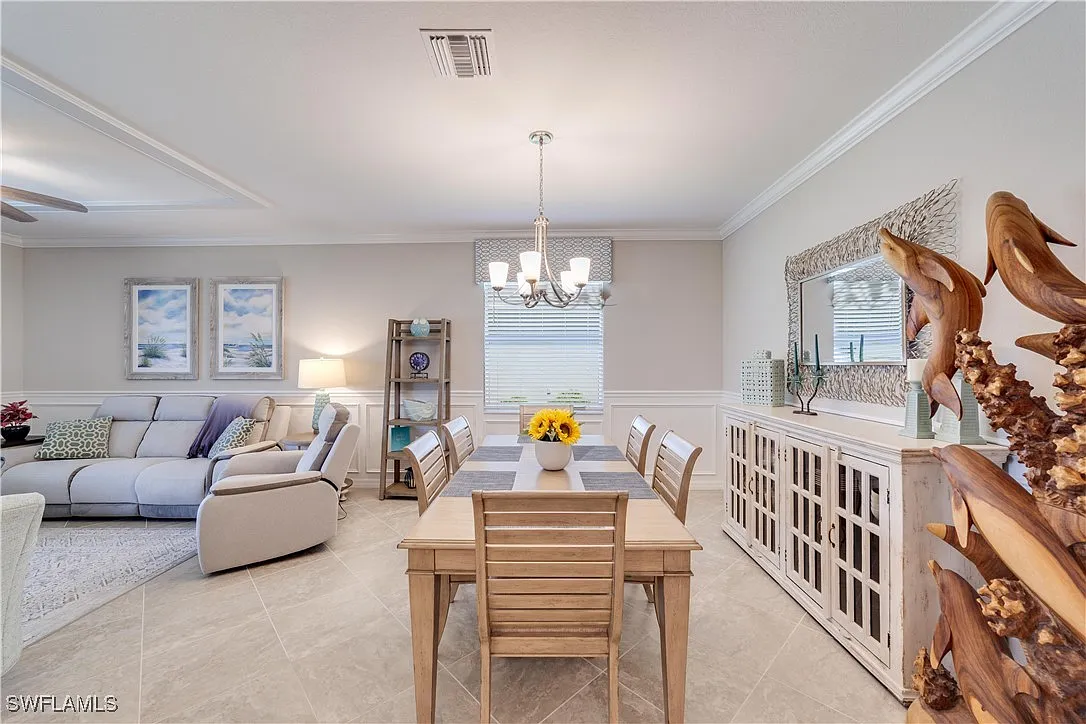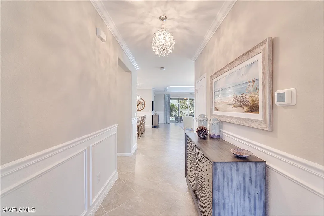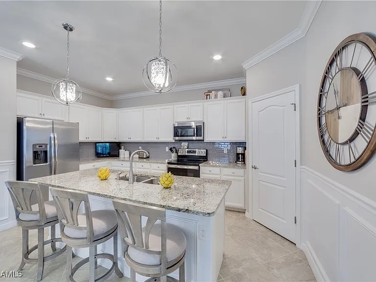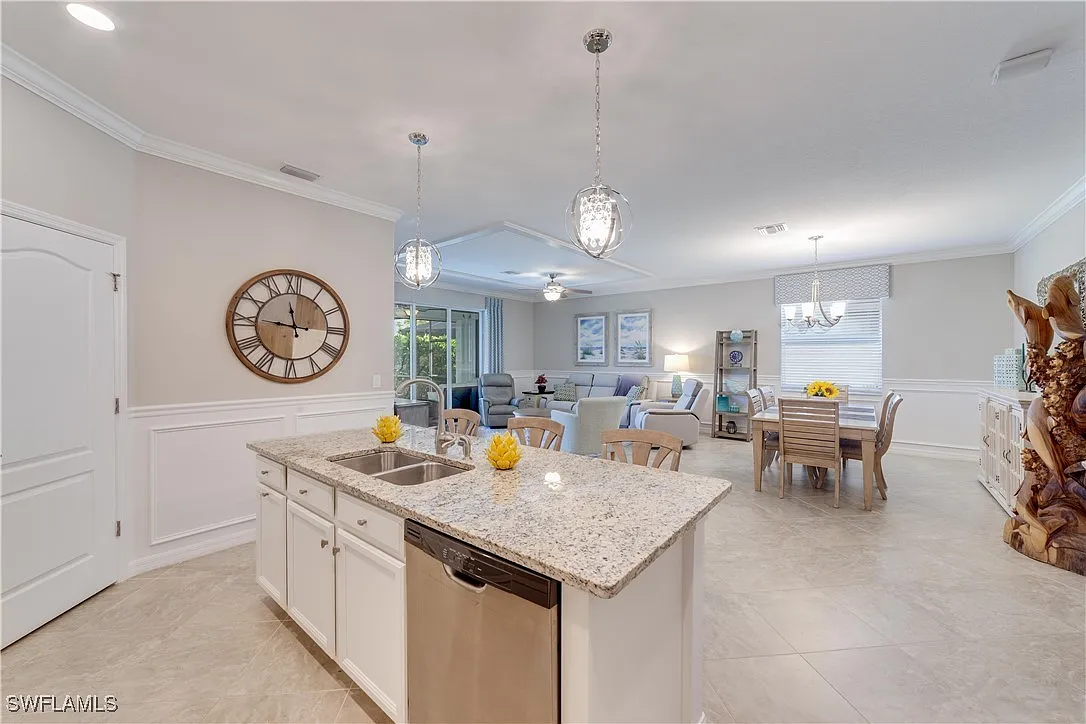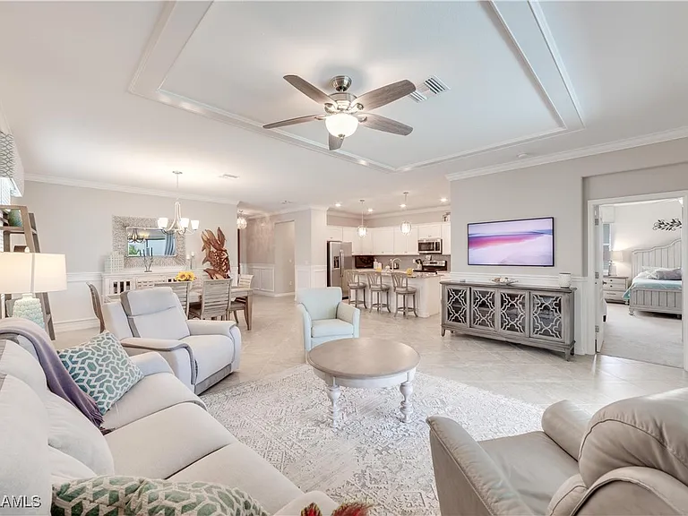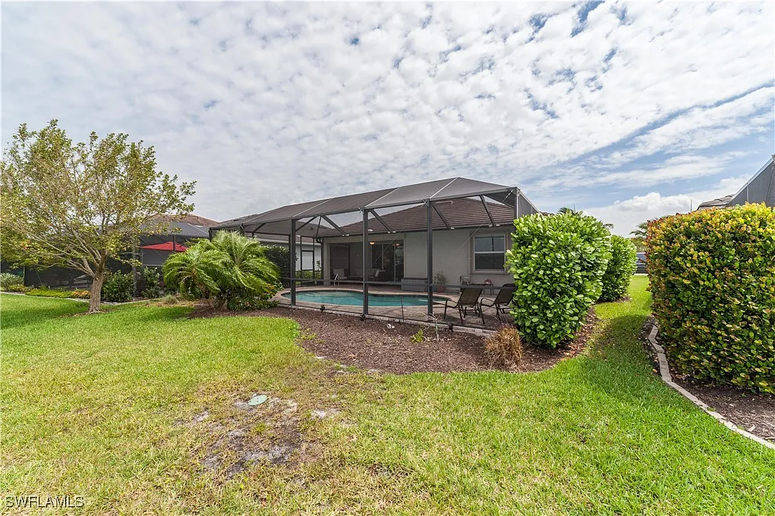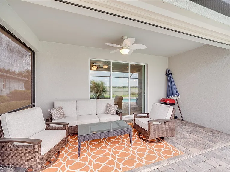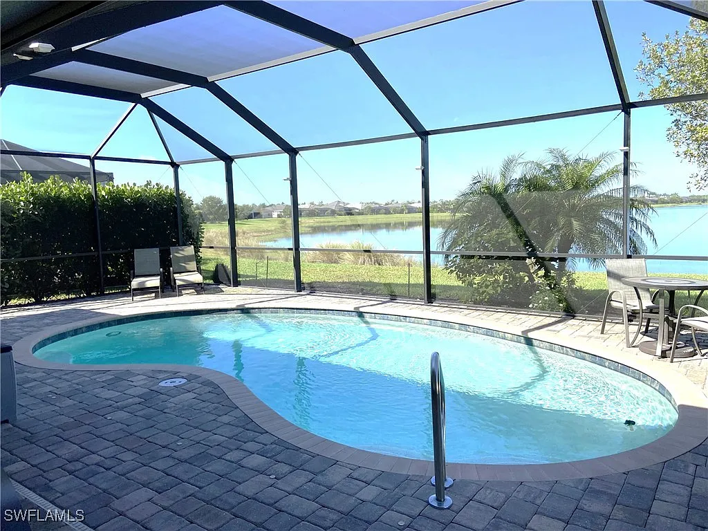 Absolutely stunning home with full lake views. Beautiful sunsets! This home is perfect for pretty much anyone. Great size rooms including the open concept kitchen, dining and living room. This home features tile throughout except the bedrooms. There are some smart home features and a newer framed tv in the living room. There is also custom wainscoting in the entry, dining and the great room. This wonderful floor plan makes this home one of the best around. Enjoy maintenance free living with the HOA taking care of all the landscaping. Relax and enjoy the salt water heated pool overlooking the beautiful lake. This home has many many upgrades and it shows from the time you enter the front door. What a beautiful well cared for home! The community features a 40 acre lake stocked with fish, a fishing pier, tennis court, a childrens playground, a fire pit, a picnic area and sidewalks throughout. Plenty of space for you and your pet since it is also a “pet friendly” community. Across Bonita Beach Rd is Crew Flint Pen Strand Park that offers 2 miles of trails. This is a wonderful home in a fantastic community featuring low HOA and low maintenance to help contribute to a relaxed lifestyle and Florida living. Come live the Florida Dream!